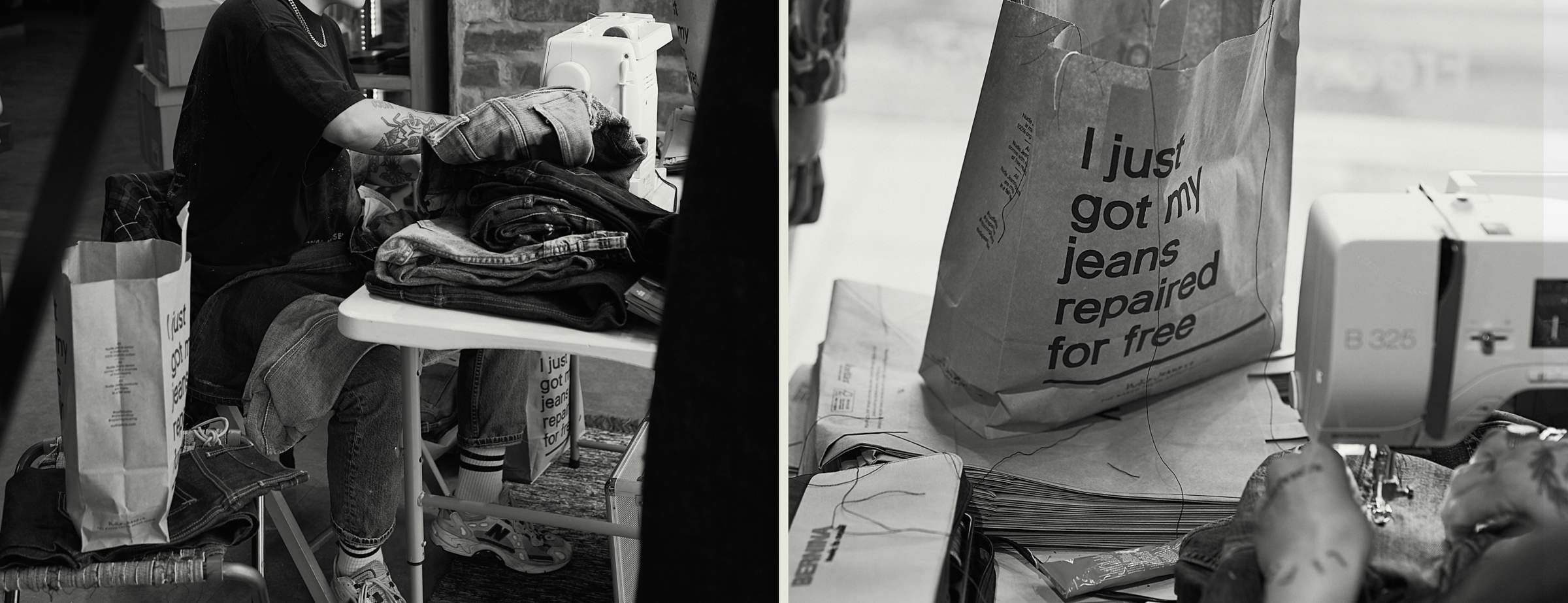 Sometimes we put wheels on the sewing machines and send them on tour. We’ll pop by for a day or two, repairing jeans on the spot. Check the schedule, and see if the Mobile Repair Station is heading to your city anytime soon.