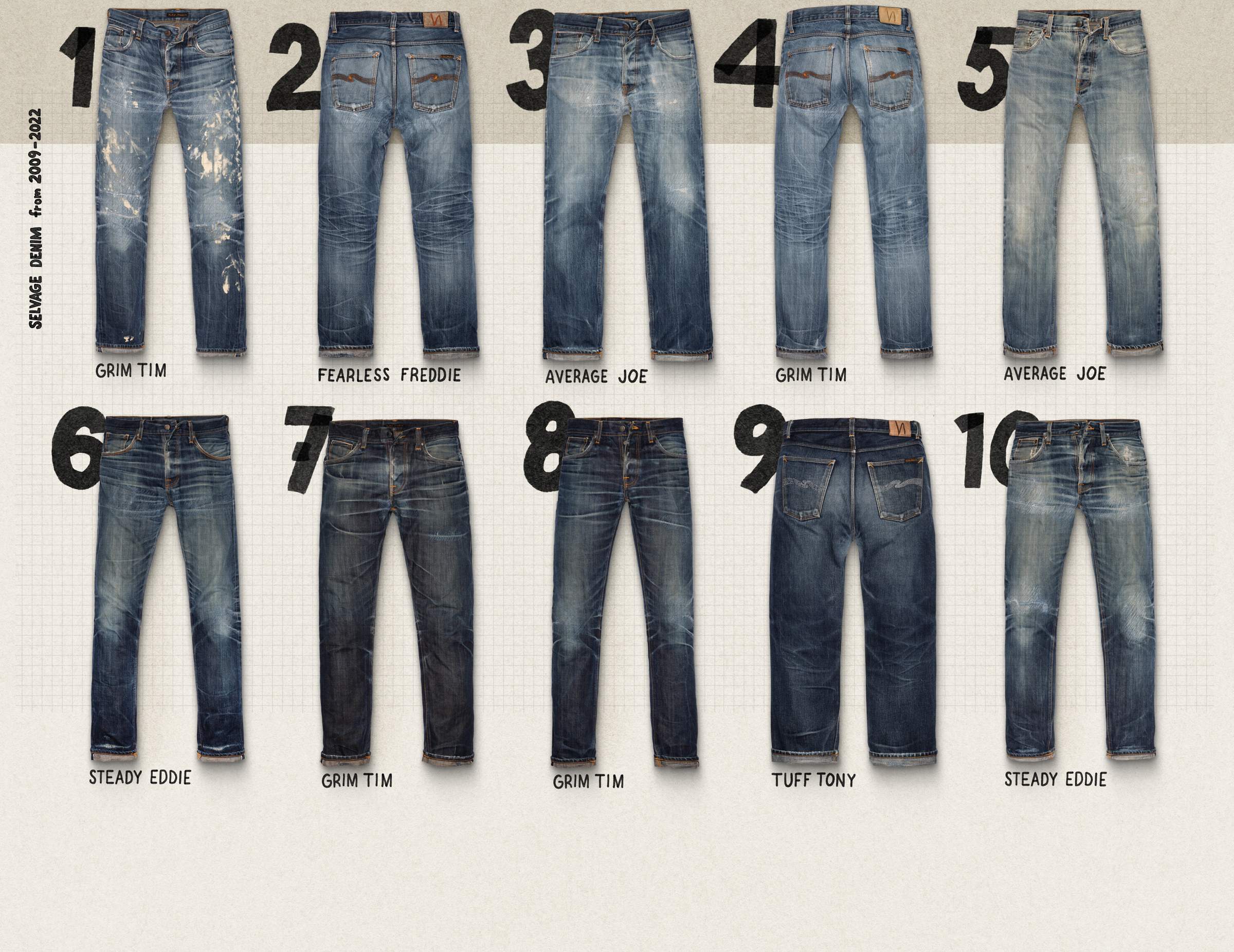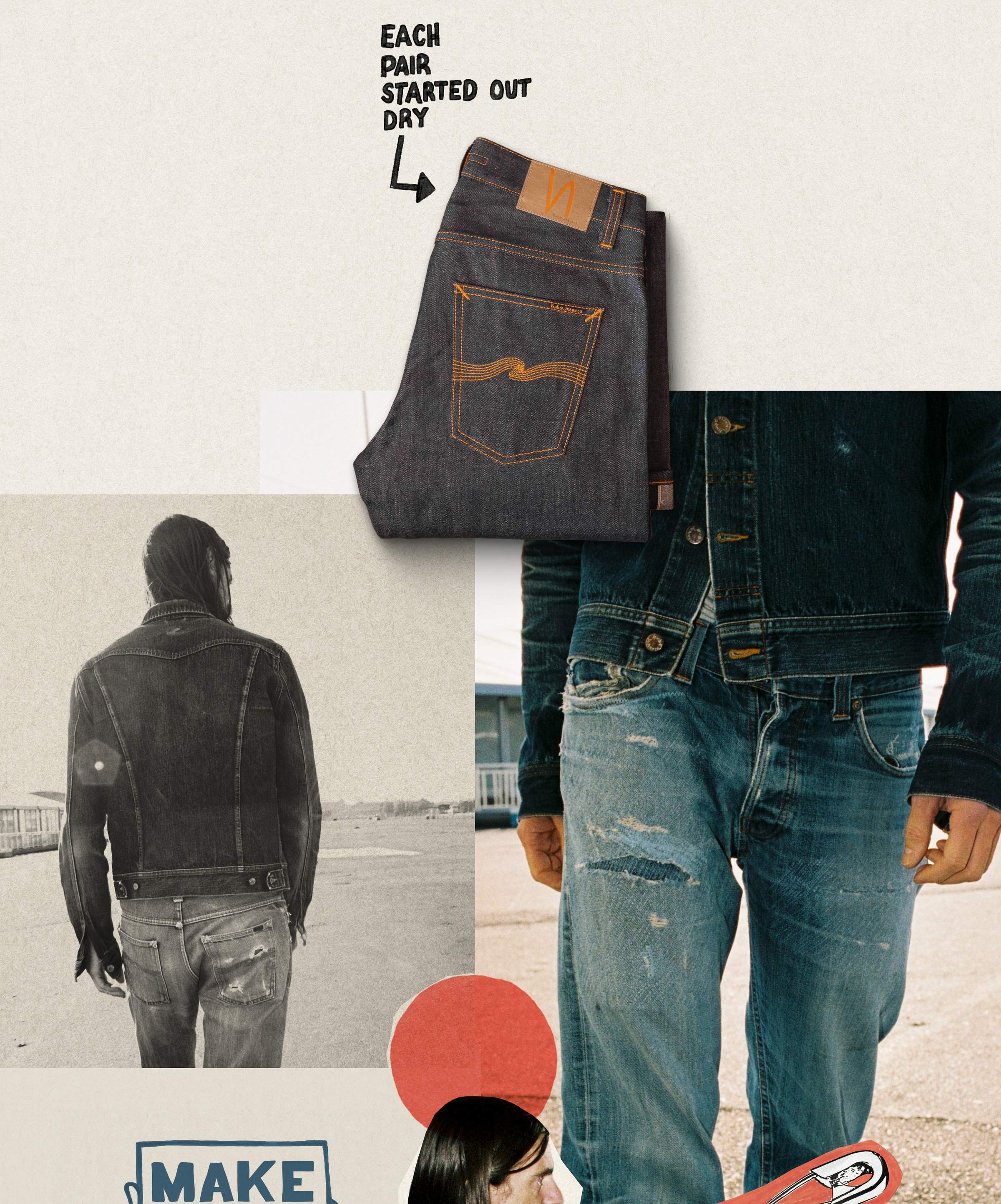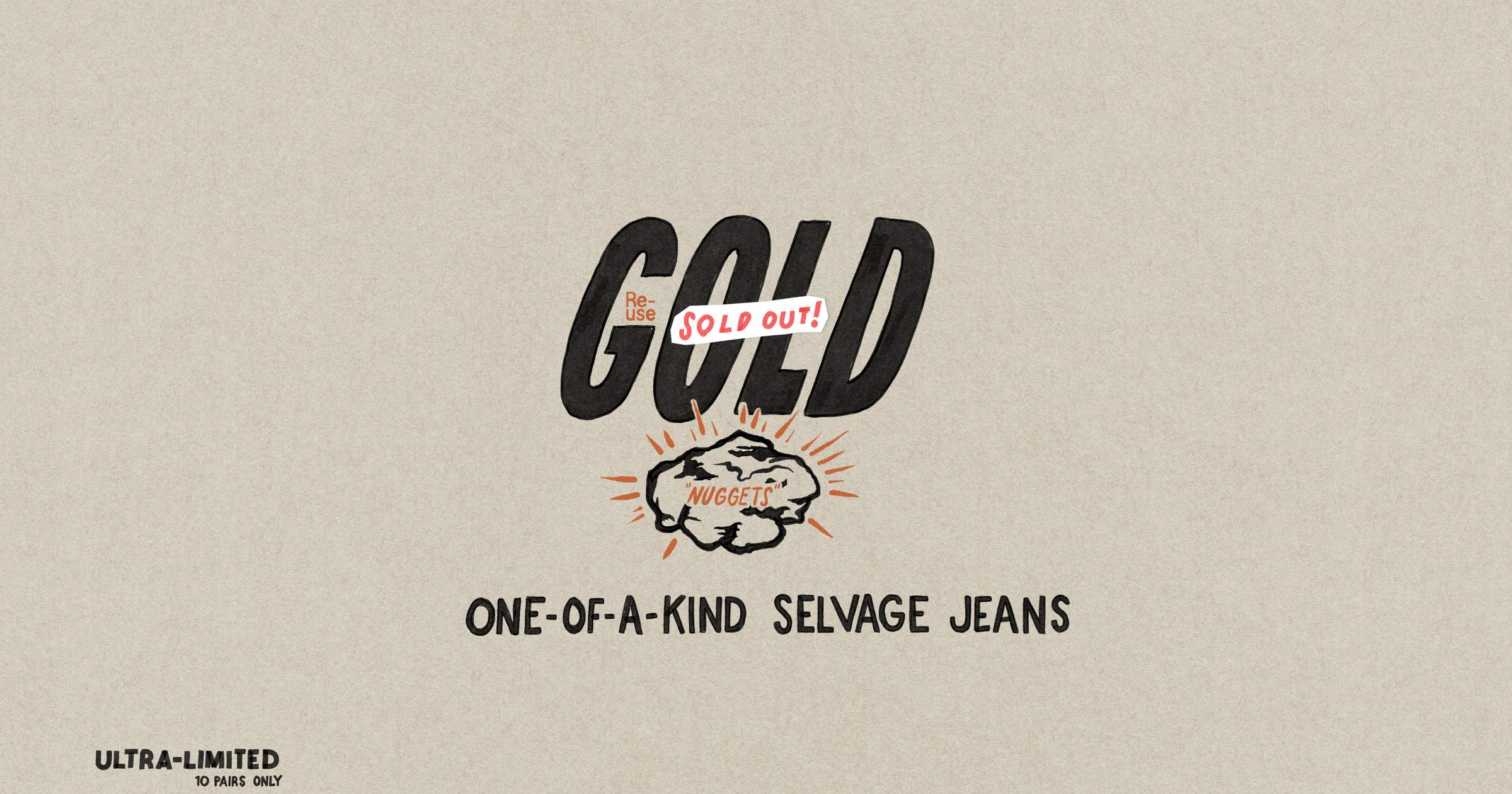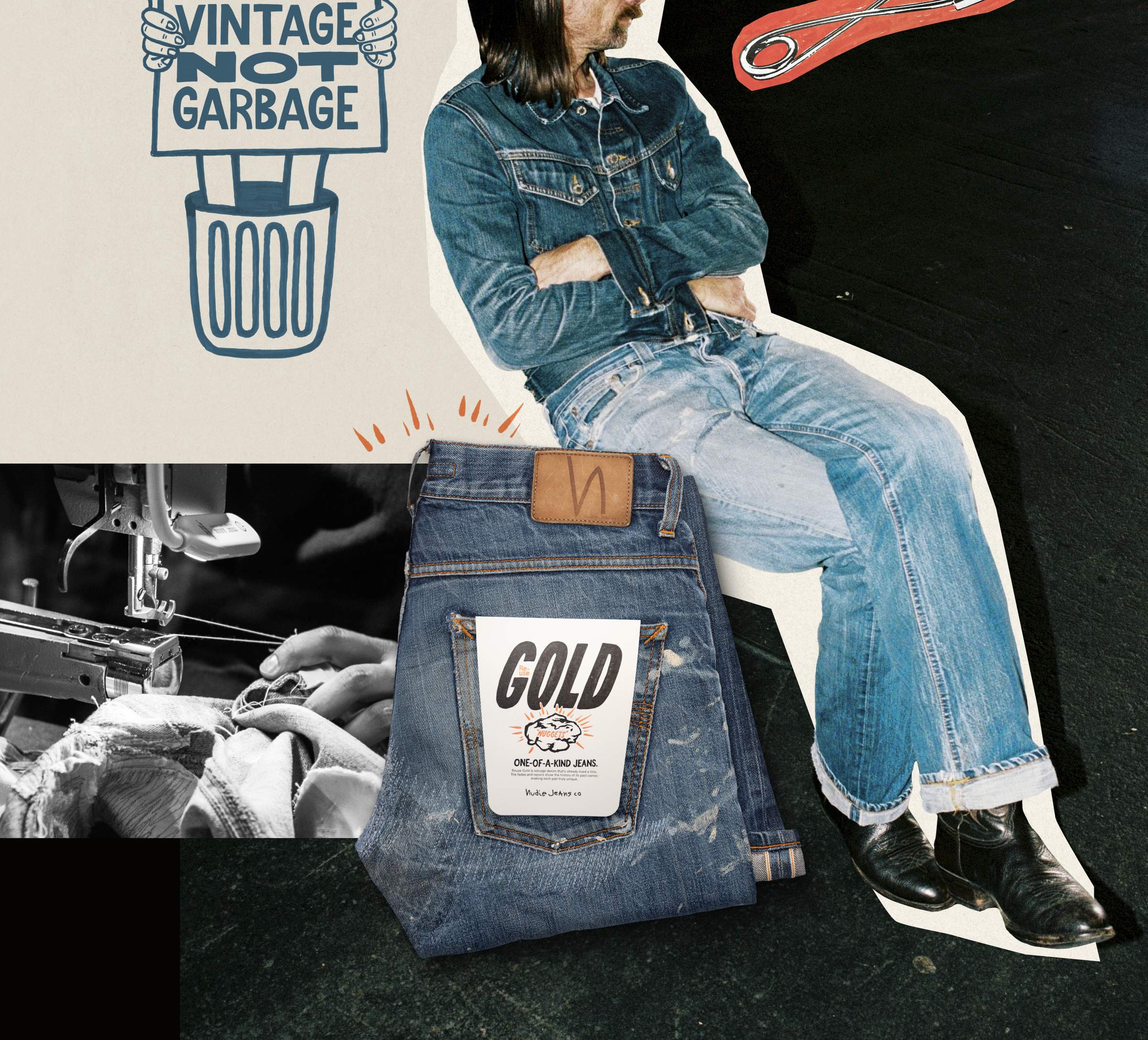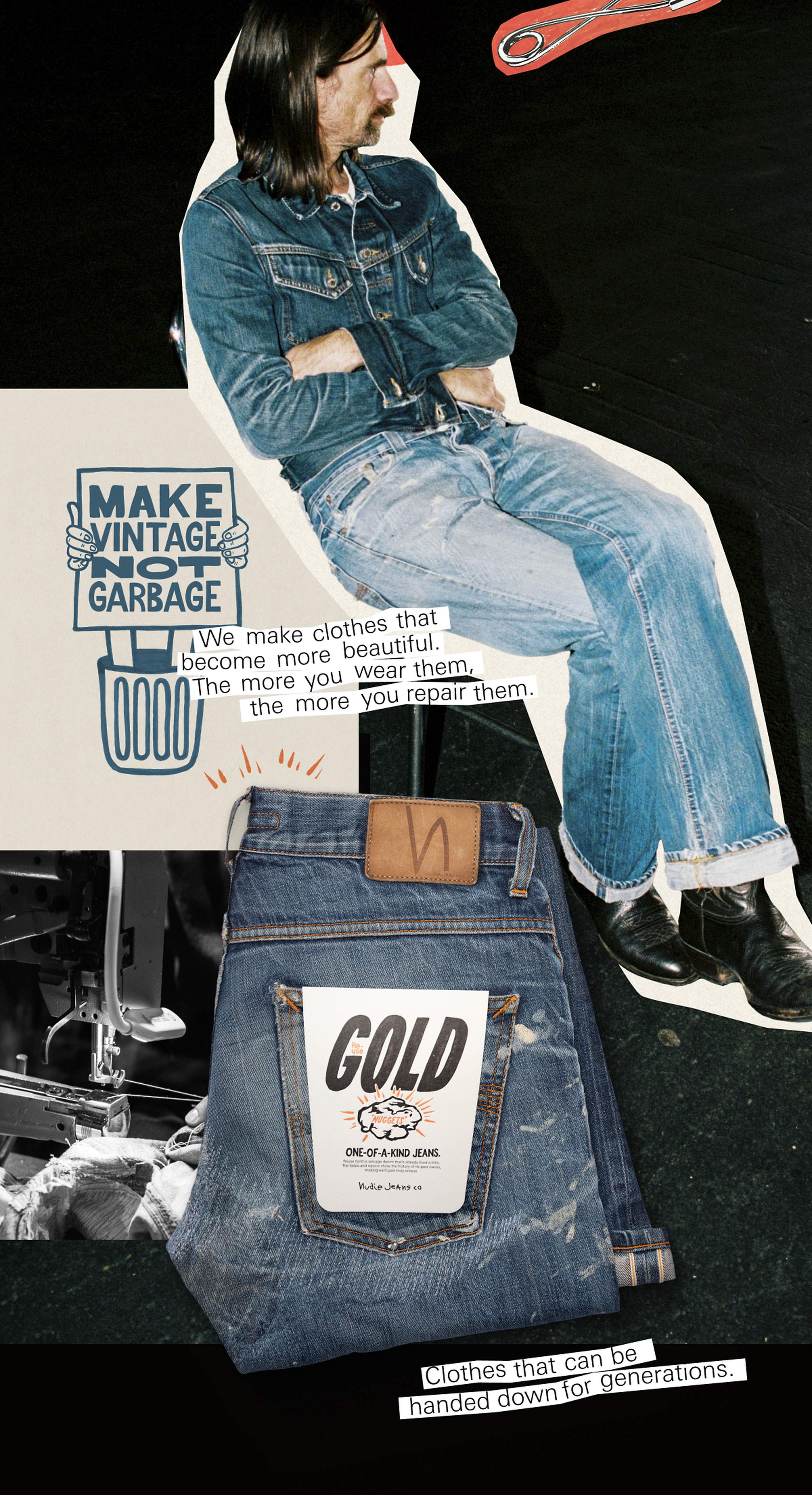 All gold sold. But…Re-use is always available at our Nudie Jeans Repair Shops and Repair Partners. Selvage options included.